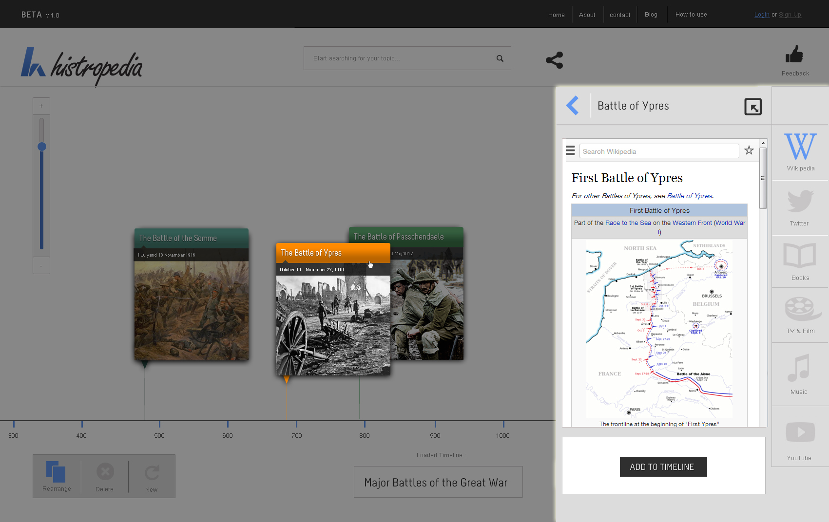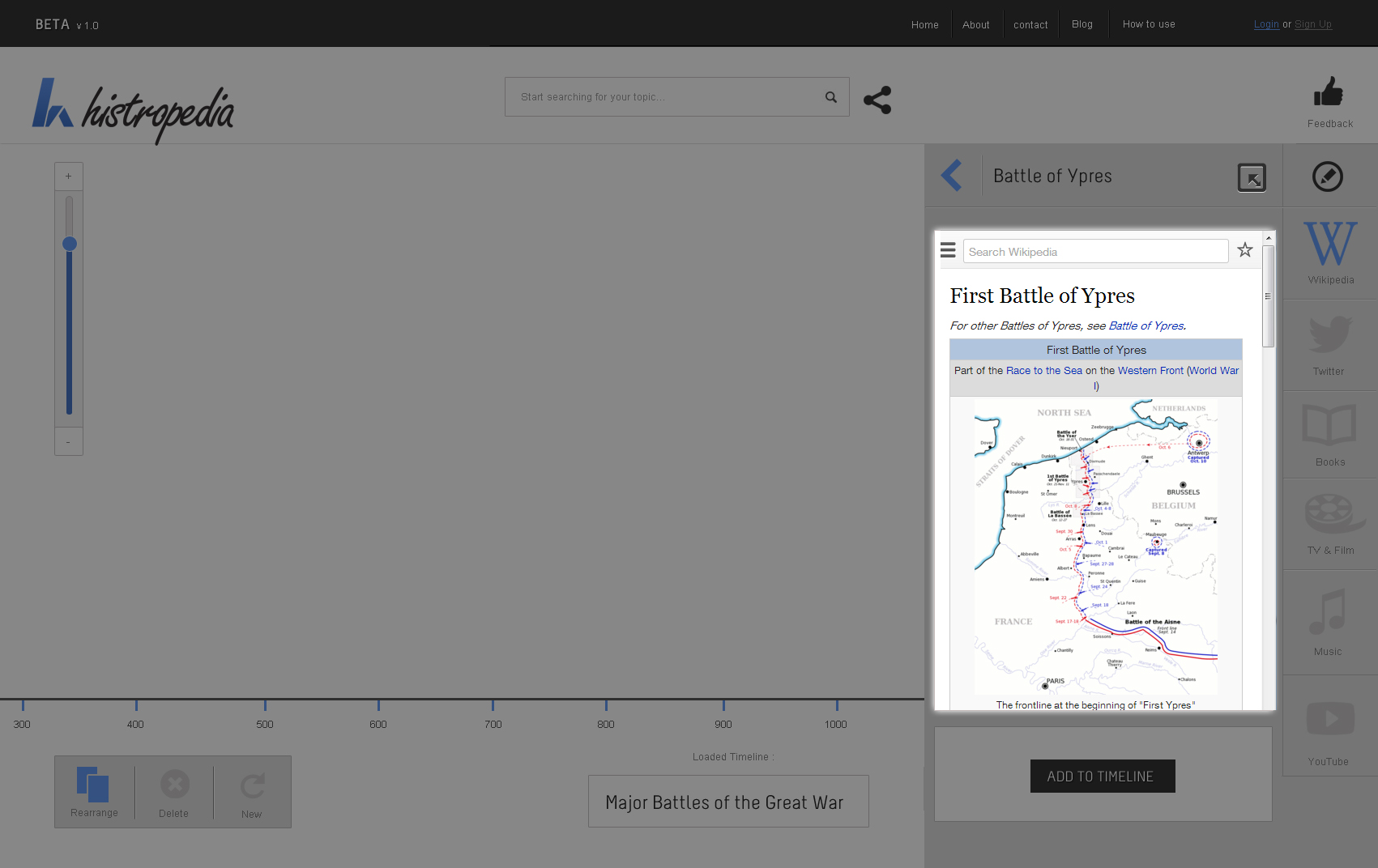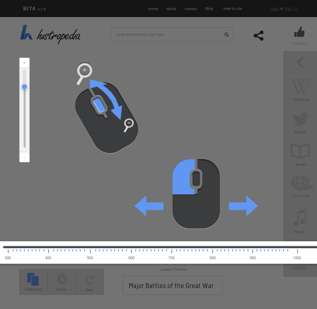 Discover over 300,000 timelines, created directly from Wikipedia categories, straight from the Histropedia search box. Only 5 results are visible at one time so some refining of search terms might be required to find the timeline you are looking for.