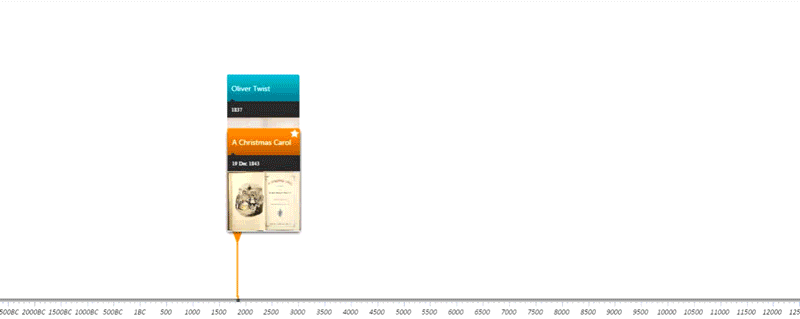 When auto arrange is turned on the most important events will be displayed on the first row of the timeline. As you zoom in to any period of history the less important events will appear and move down to fill the space created. To keep an event visible it can be favourite using the star button on the event card.