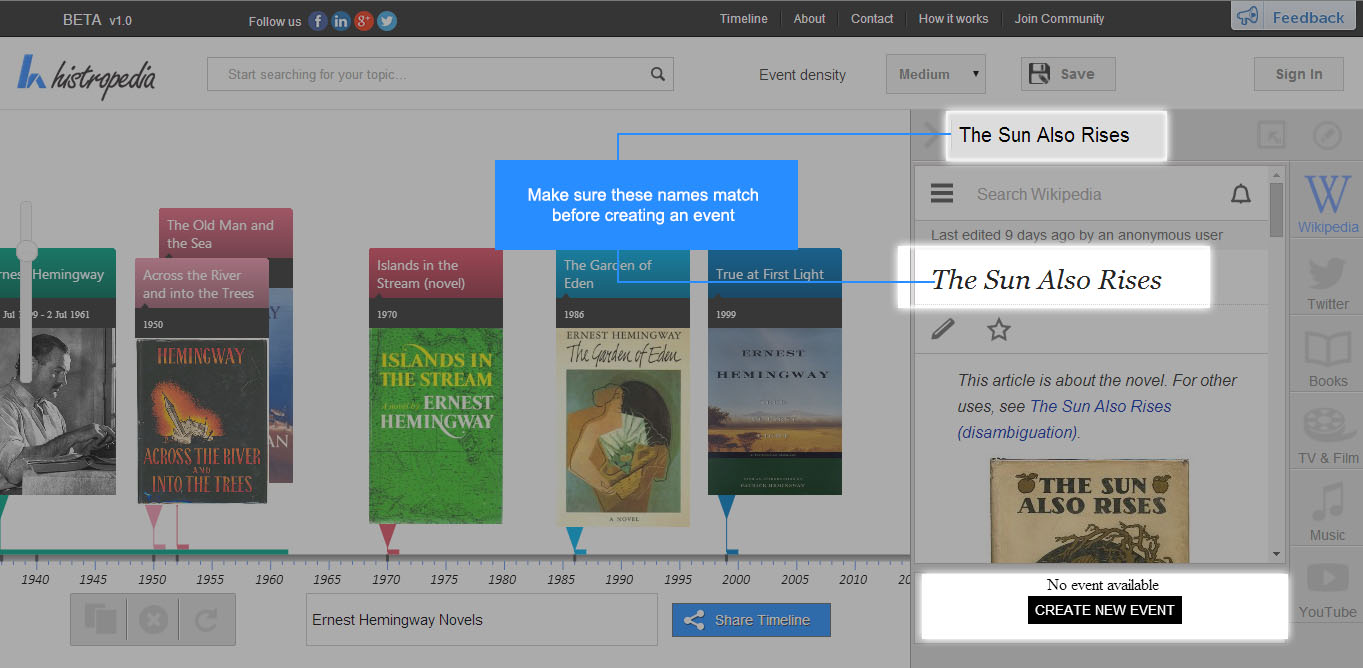 It is important to make sure the title of the Wikipedia article matches the title of the Reading Window when creating an event.