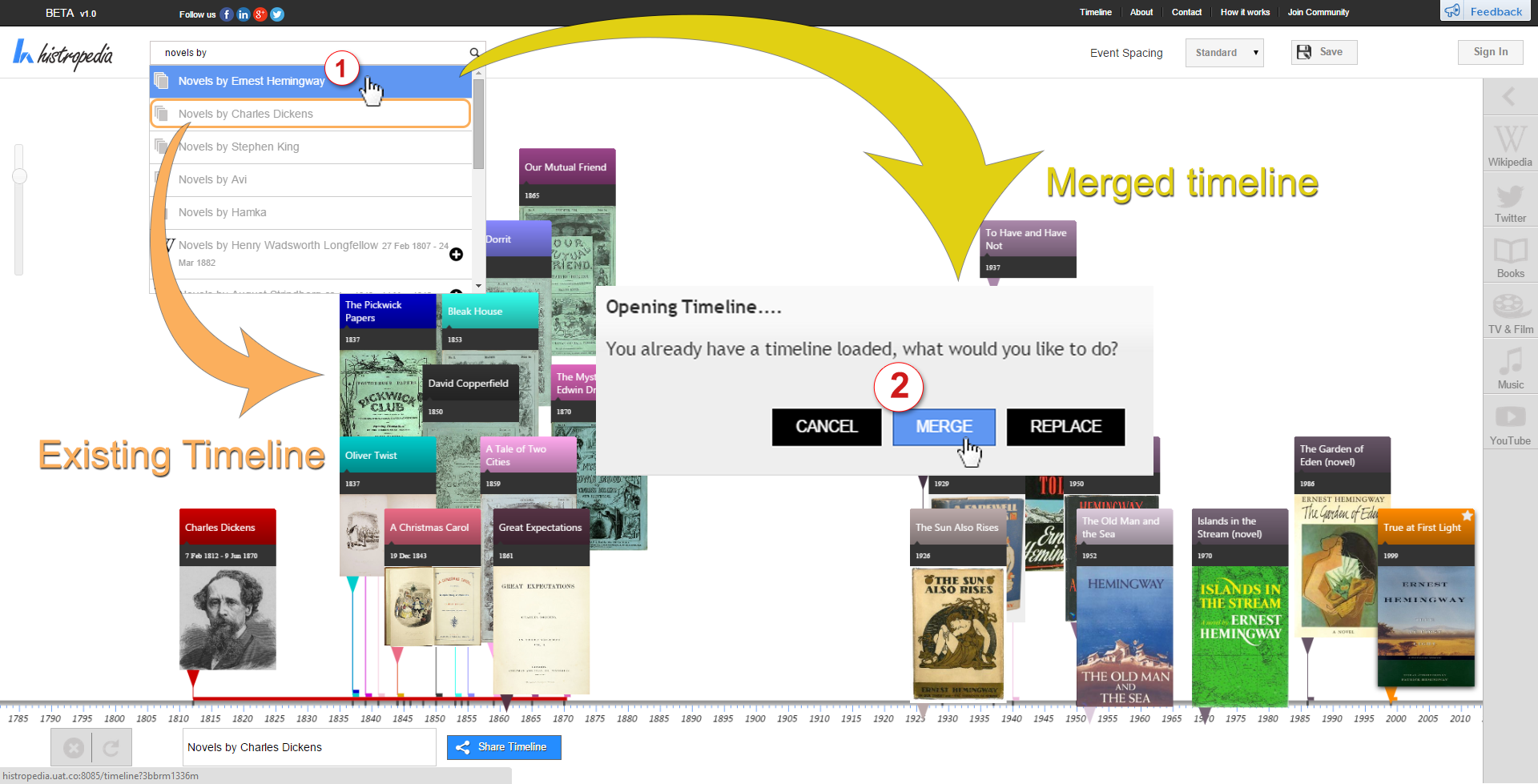 If you already have events on the timeline when you load a new timeline you will be asked if you want to merge the new timeline with your existing events.