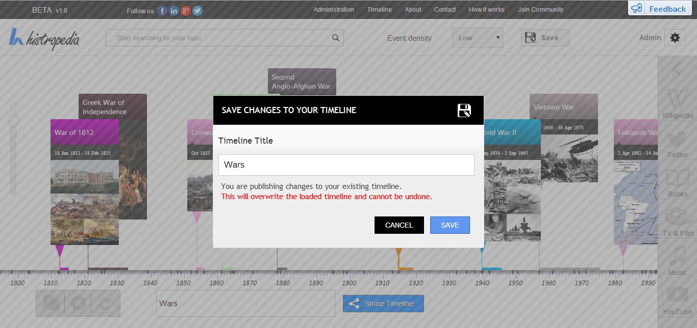 Histropedia is an open platform that allows anyone to create new events or edit existing events in our database.